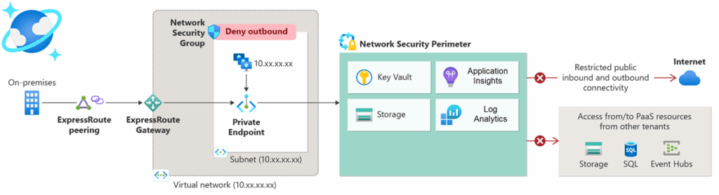 Azure’s Network Security Perimeter (NSP) is a service designed to provide centralised security and governance for Azure Platform as a Service (PaaS) inbound and outbound connectivity, which has a public endpoint. It primarily targets PaaS services that operate through public endpoints, where PaaS provides both inbound and outbound access via a public IP address.