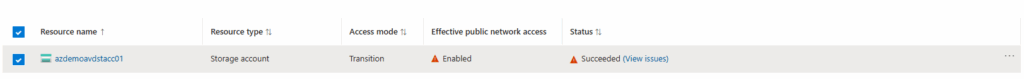 • By default, the access mode is Transition, and it does not block the public endpoint access if the resources are enabled.