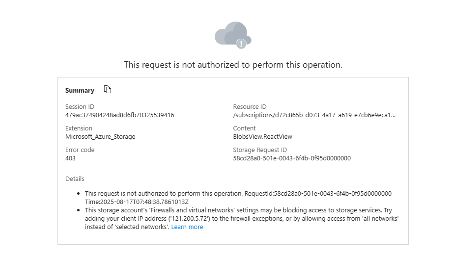 • After applying the rule, access the browser to view the blob or container. I can access the blob.